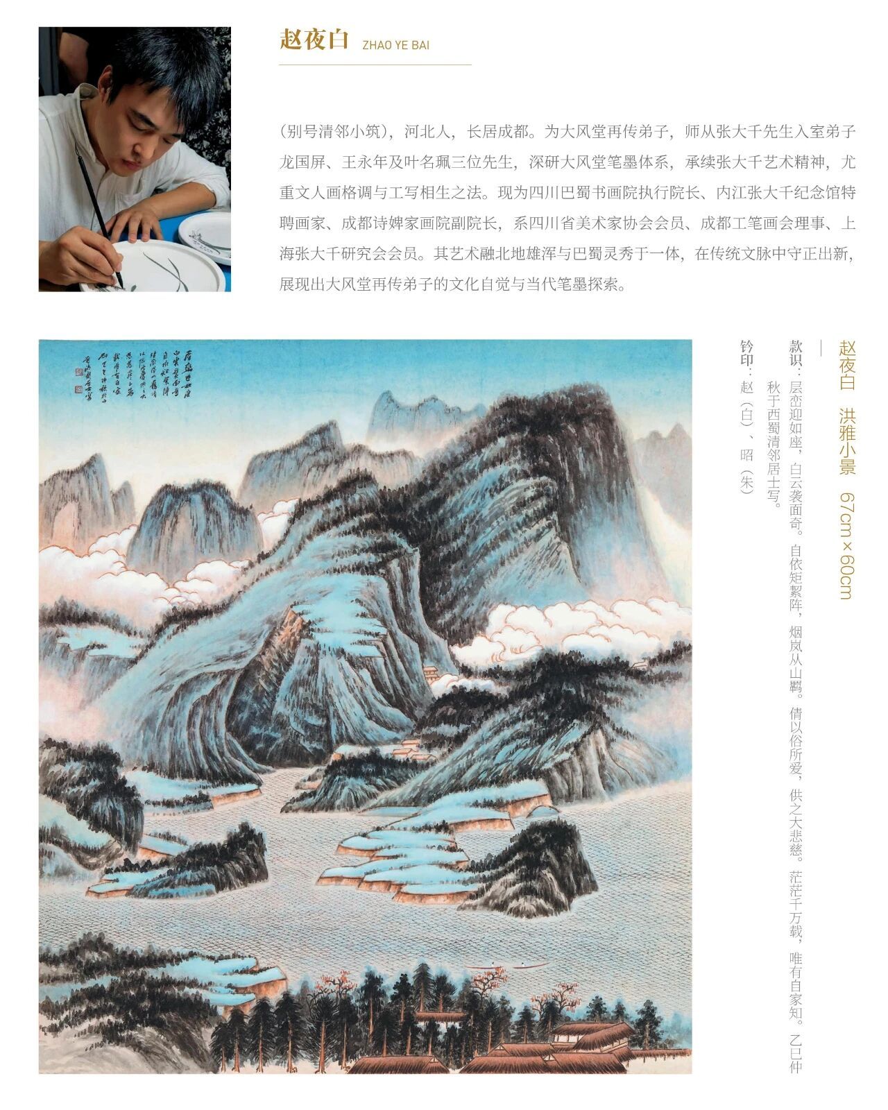 展出百余幅精心力作,涵盖山水、花鸟、人物诸科,融汇工笔、写意、泼墨泼彩诸法。您将看到: