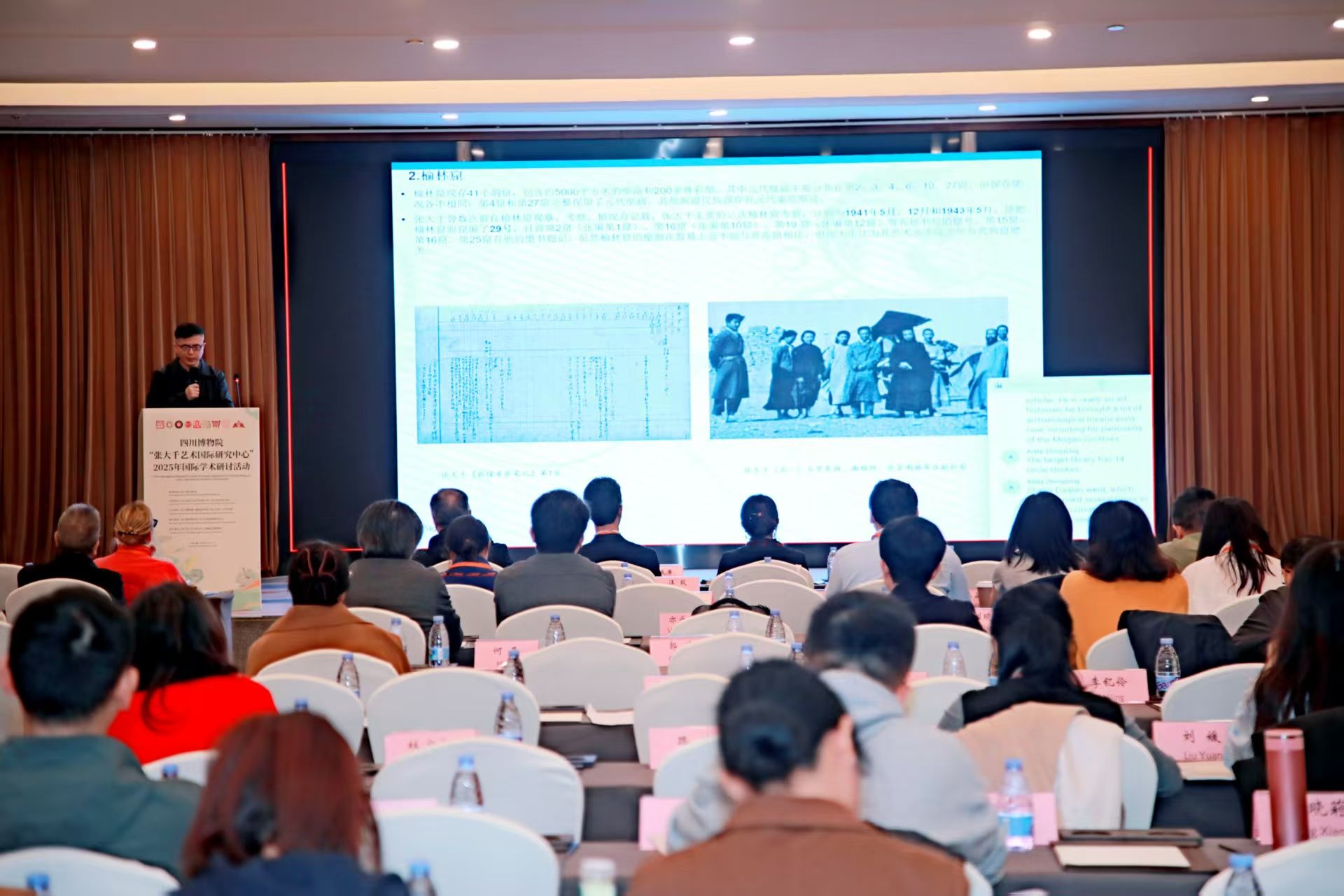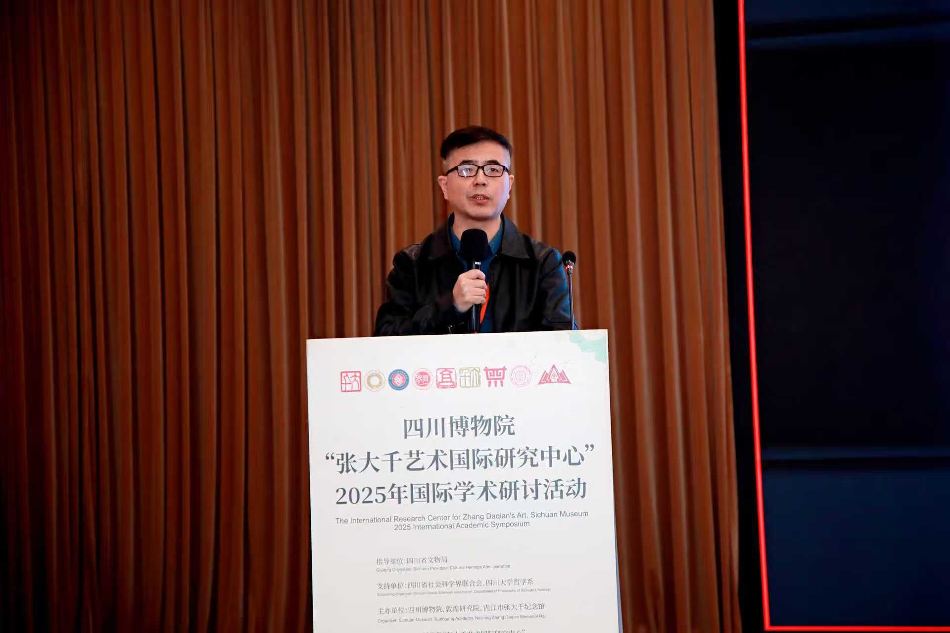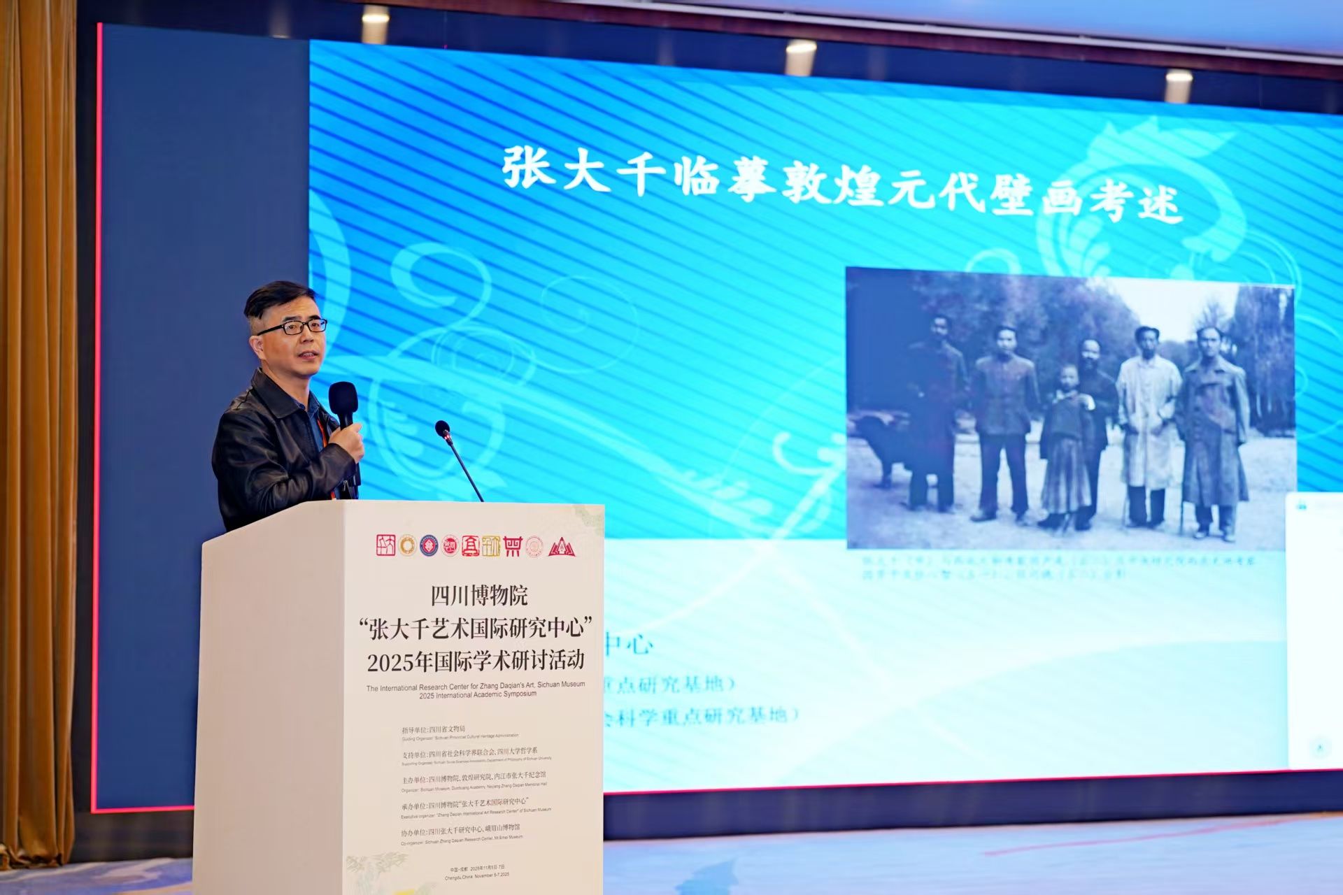 2025年11月6日,由四川博物院、敦煌研究院联合主办的“张大千艺术国际研究中心”2025年国际学术研讨活动在成都举行。活动汇聚了来自中国、美国、德国、巴西等国家和地区的专家学者以及张大千先生亲属代表。四川省社会科学界联合会党组书记屈晓华,敦煌研究院副院长张小刚等领导出席开幕式。内江市委常委、宣传部部长蒋学东出席并致辞。中心主任杨坤教授被聘为张大千艺术国际研究中心学术委员会主任,并担任大会学术主持。中心专职研究员王平参会并作主题演讲。